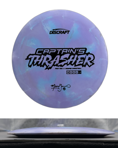 The Captain Thrasher is a stable distance driver from Discraft. Expect these to have a straight pushing flight with a consistent, strong finish at the end of its flight. Check out a pre-owned Discraft Captain Thrasher at Disc Zone today!