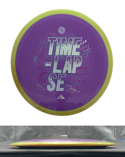 New Time-Lapse, new Special Edition! Matthew Jorde brings us a typography-based stamp for the release of the Special Edition retooled Neutron Time-Lapse, adorning it with a clean style. The goal was to produce a stamp that was reminiscent of the first Time-Lapse SE, while still being its own thing – most fitting for a retool! Players will easily notice the difference between the original Special Edition Neutron Time-Lapse and this new retooled version, both by how it feels in the hand and its flight. Our goal for the Time-Lapse was to create a distance driver that high-power players would trust for controllable maximum distance, and lower-power players would appreciate for reliable and predictable flights. The retooled Time-Lapse is everything we wanted from the original run, and we are very excited about this one. Celebrate this achievement with Simon and MVP by grabbing your own Special Edition retooled Neutron Time-Lapse today!